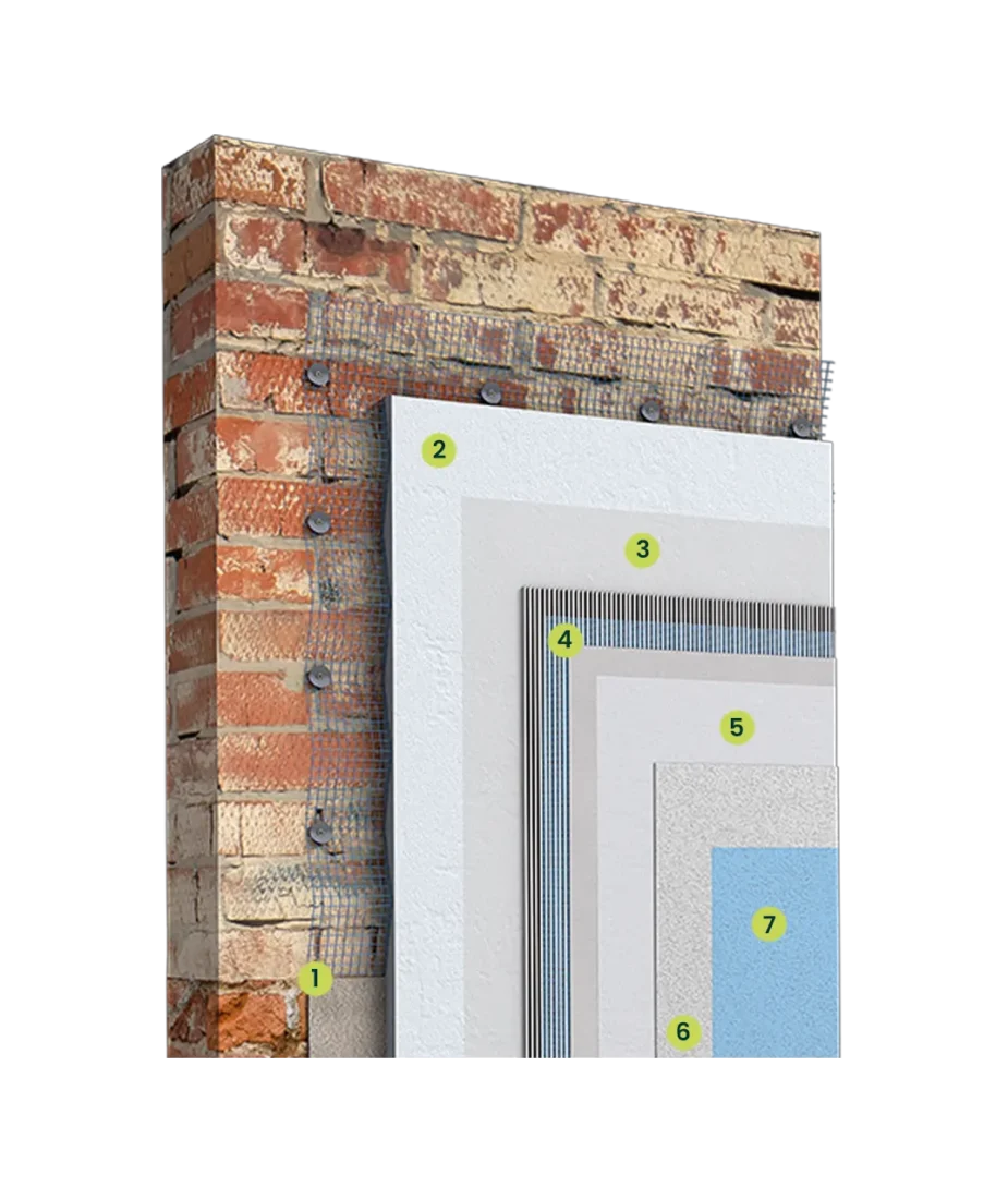 Nominell varmeledningsevne helt ned til 0,028 W/(mK) – effektiv isolasjon fra første millimeter.SPESIALMØRTEL